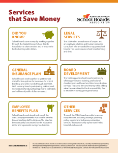 The staff of the Saskatchewan School Boards Association provides the following services: