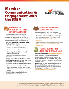 The SSBA represents and supports the collective voice of locally elected school boards by providing leadership in advocacy, board development and high-quality services.