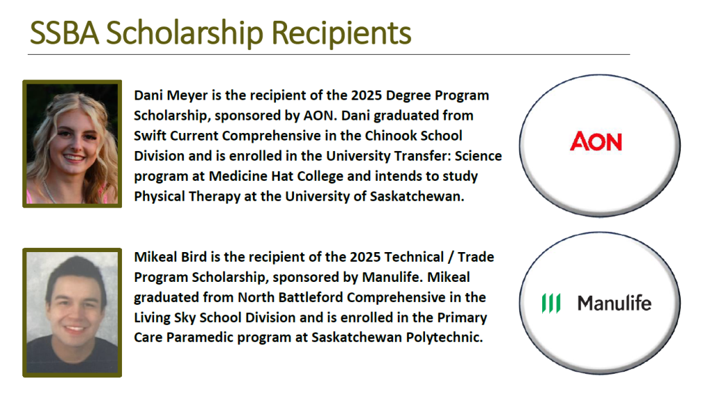 Each year, the Saskatchewan School Boards Association awards two $3,000 scholarships to graduating Saskatchewan high school students: